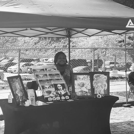 At a young age, Talina was captivated by art and storytelling. She grew up in Oklahoma adoring the concepts of the two blending together to create a masterpiece of art imitating life. Talina first found her love of art because her mother, an artist and nurse, helped to inspire her daughter with one of her own detailed works she did while in high school. Her father's constant unweavering support assured her that her dreams didn't have to be just that. Illustration soon became her passion and then her business. After marrying her husband, a U.S. Army Veteran, then moving to New Jersey and having her son she pursued school to obtain her Associate's Degree in Fine Art. During the pandemic, she continued to seek her education in art. Talina bolstered through the challenges to start her small art business, Mrs. Lina Bina. She continued to persevere with her artistic abilities in a way that challenges and inspires her. She specializes in stylized art that creates a story and carries a piece of who she is.